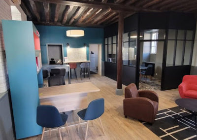Après avoir pris connaissance du projet, nous nous sommes déplacés dans les locaux de la future agence où nous avons pu constater que la charte n’était pas la seule contrainte. Les poutres en bois et la hauteur sous plafond à plus de 3,1 mètres, bien qu’originales, n’allaient pas nous faciliter la tâche. Sans compter le timing à respecter !